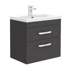 Brooklyn Gloss Grey L Shaped Bath Suite (with Vanity + Tall Cabinet)