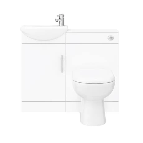 Kit out the smallest room in the house with this Sienna High Gloss White Vanity Suite. Installing a combined toilet and sink unit maximises the space available in your bathroom. This cloakroom bathroom suite includes a minimalist style modern toilet with a short projection of 530mm, plus a sink packed with handy bathroom storage. All pipework and the cistern are fully concealed, so you’ll benefit from a beautifully streamlined fuss free look. Drill the front panel for a right or left hand flush to suit the layout of your home.
