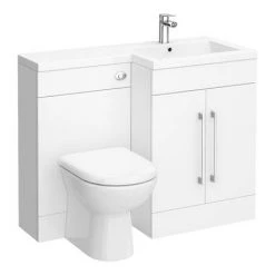 Need to save space in your bathroom? At just 1100mm in width, the streamlined Valencia bathroom combination unit is perfect for smaller areas like cloakrooms and en suites. It features a high-quality square toilet with a concealed cistern unit to hide unsightly pipework, while the matching sink is made from robust poly-marble and sits above a cupboard with two doors for easy storage. Made with versatility in mind, the combination vanity unit is available in either left or right hand options and features a clean white gloss to complement a range of interiors.